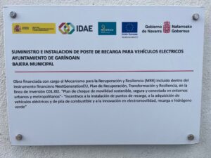 PROYECTO: Suministro e instalación de poste de recarga para vehículos eléctricos del Ayuntamiento de Garínoain en la bajera municipal.